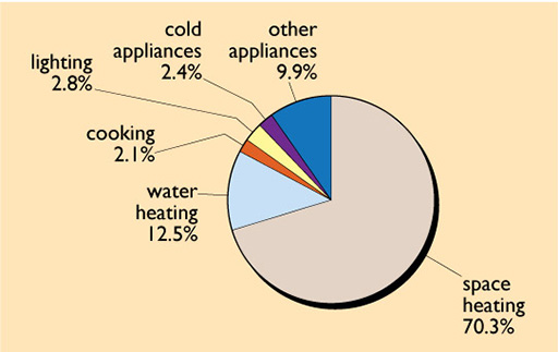 +Moreover, most of the energy used in buildings is for space heating, as show the following figure: