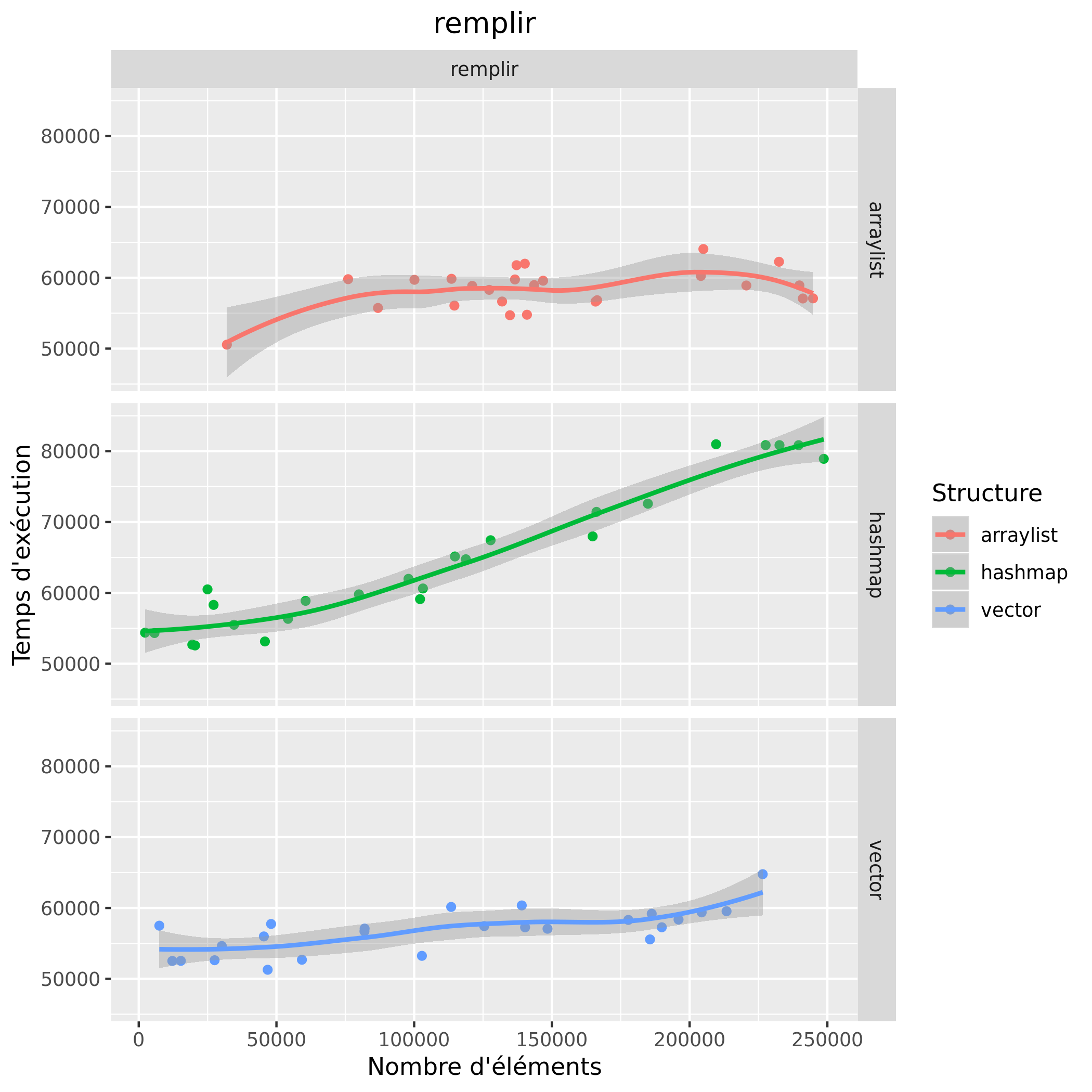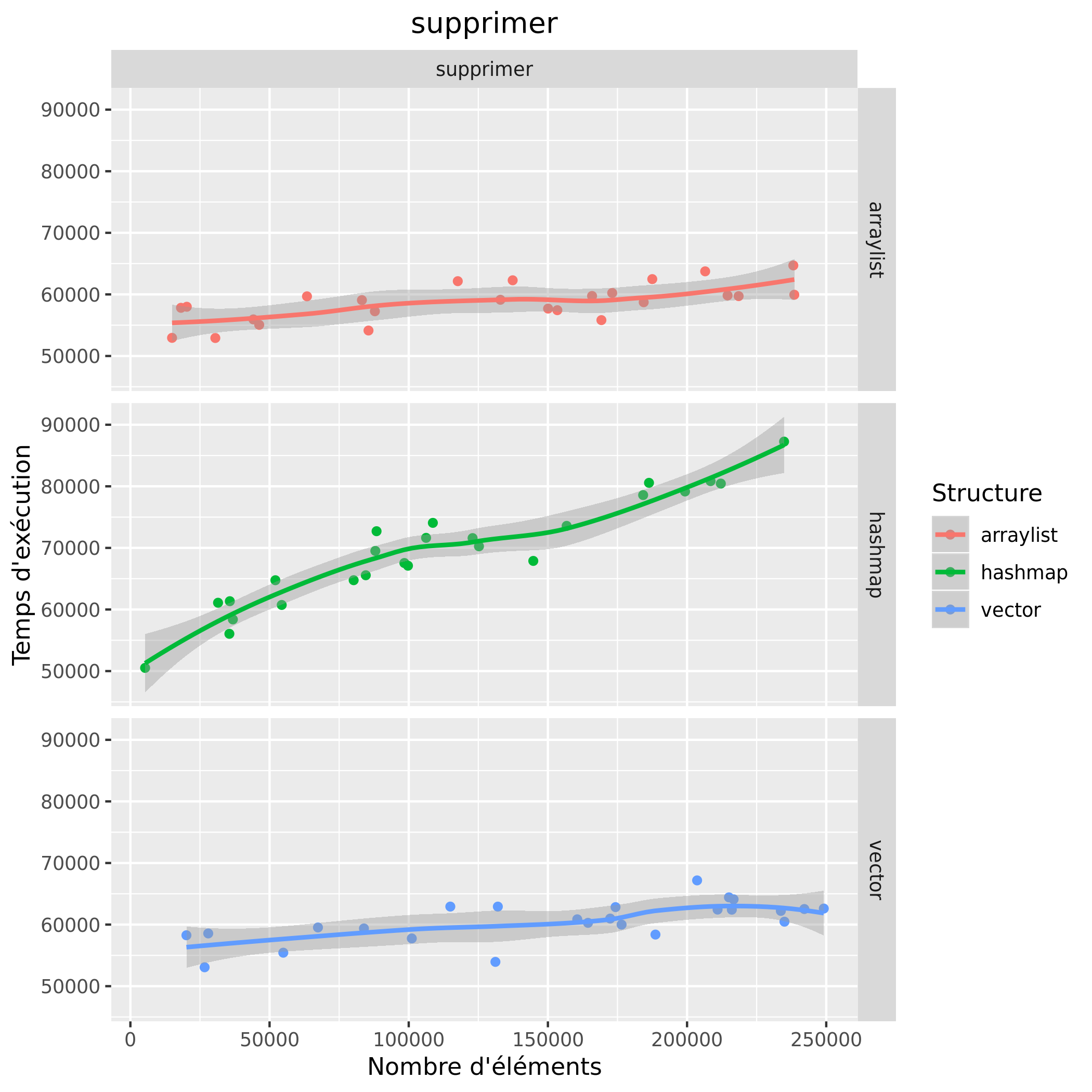 Comme dit précédemment, l'étude portera sur les arraylist, hasmap et vector. Les opérations étudiées sont :